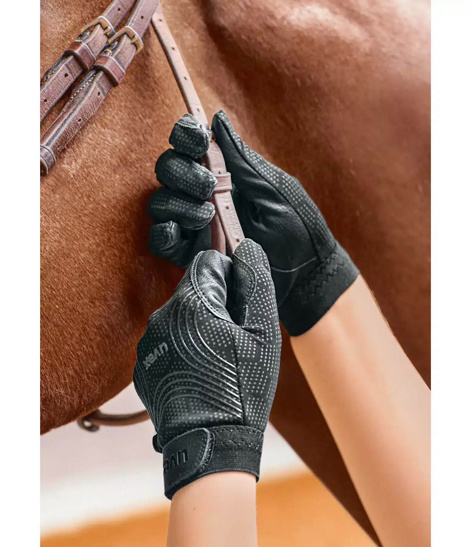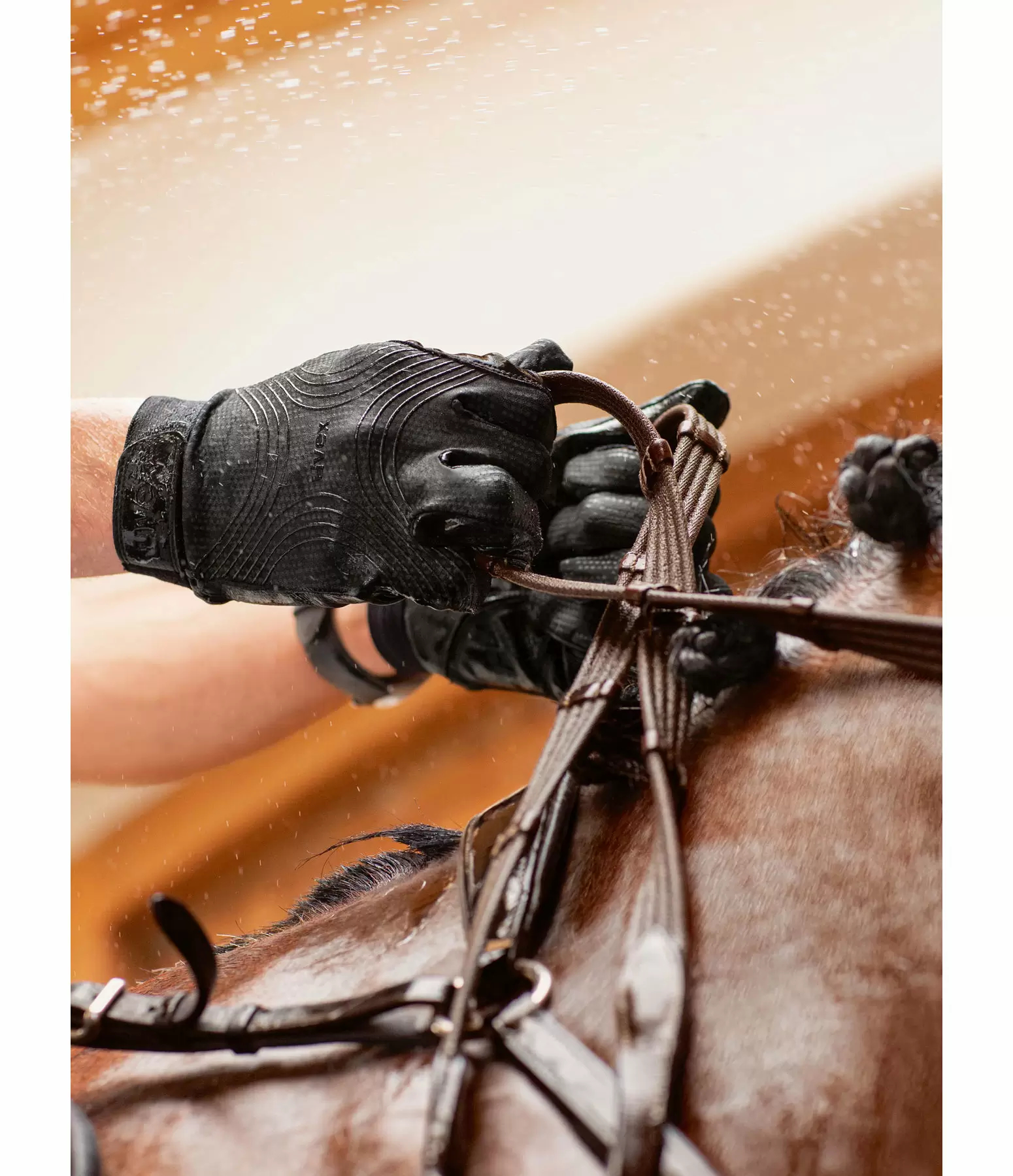 Les gants d'équitation Uvex Ceravent combinent durabilité et légèreté pour les cavaliers exigeants. Fabriqués avec la technologie Ceraspace™, qui intègre un revêtement en céramique sur toute la surface extérieure, ces gants offrent une résistance exceptionnelle à l'abrasion. Le cuir synthétique hautement résistant utilisé aux points de contact assure une adhérence optimale, indispensable pour un contrôle précis des rênes.Les inserts en tissu élastique permettent une flexibilité dans toutes les directions, tandis que le design innovant et sportif de ces gants inclut une manchette courte et ajustée, quasiment imperceptible et parfaitement compatible avec tout style de tenue d'équitation. De plus, les gants Uvex Ceravent sont compatibles avec les écrans tactiles, ajoutant une couche de praticité pour les cavaliers modernes.Ces gants sont également conçus pour une ventilation optimale grâce à l'utilisation de matériaux en maille, assurant une gestion efficace de l'humidité et une évaporation rapide de la transpiration. Ils sont lavables, ce qui facilite leur entretien après une utilisation intense.Les gants Uvex Ceravent sont disponibles en plusieurs tailles et sont proposés dans une couleur noire élégante. Ils conviennent parfaitement pour l'équitation avancée et compétitive, garantissant une protection et une performance exceptionnelles lors de vos activités équestres?
