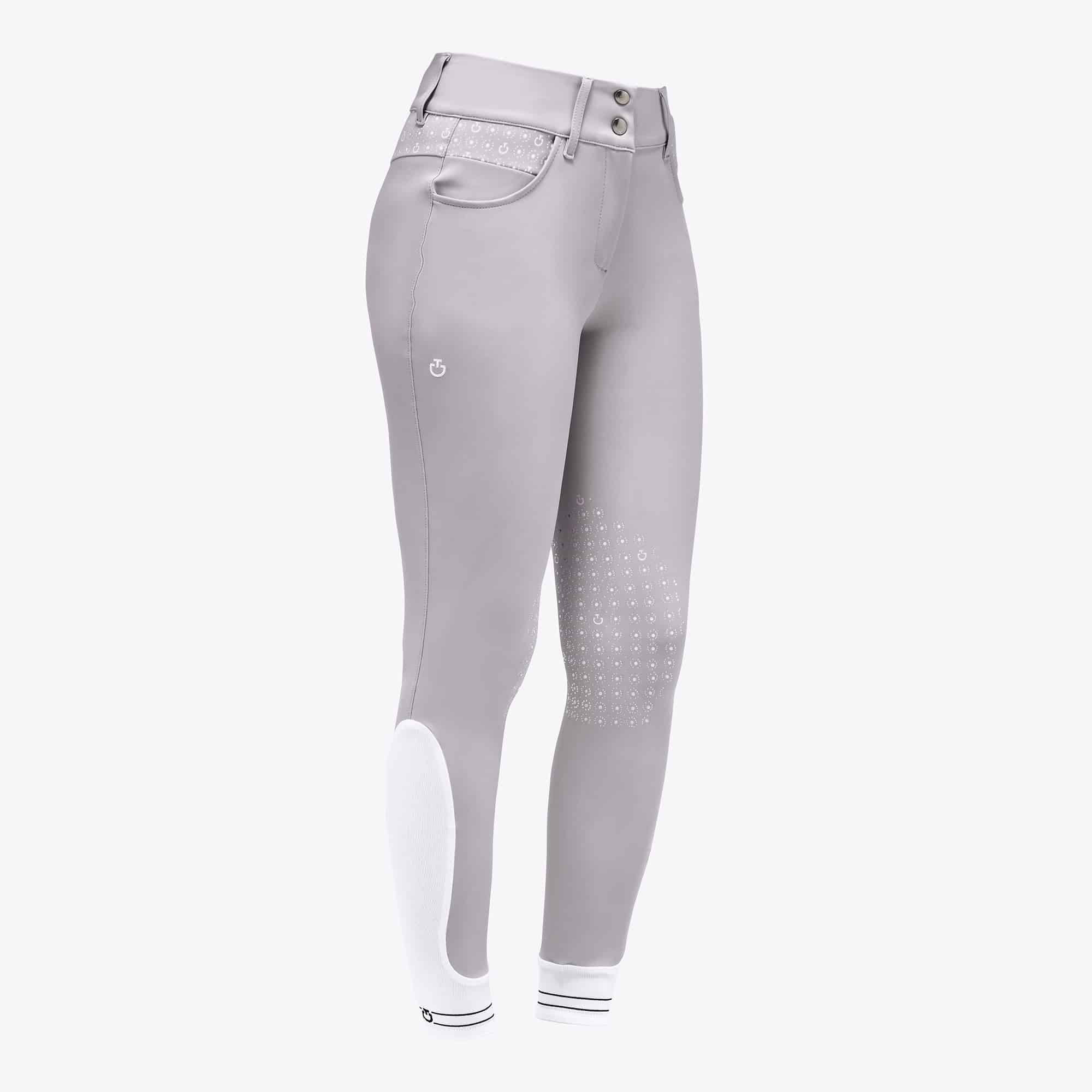 Le pantalon d'équitation CT Motif Print de Cavalleria Toscana allie élégance et fonctionnalité pour répondre aux besoins des cavaliers exigeants. Ces pantalons sont confectionnés en tissu bi-stretch, assurant une grande liberté de mouvement tout en maintenant un confort optimal. La matière est respirante, à séchage rapide, et possède des propriétés antibactériennes et anti-UV, ce qui les rend idéaux pour les longues sessions d'entraînement et de compétition.Les pantalons présentent une taille haute pour un maintien sûr, ainsi que des détails en silicone à l'intérieur des genoux pour une meilleure adhérence en selle. La conception ergonomique et les "chaussettes" élastiques à la base des jambes permettent un ajustement confortable sous les bottes d'équitation.Disponibles en plusieurs couleurs, dont le blanc, le gris clair et le bleu, ces pantalons sont adaptés pour diverses disciplines équestres telles que le saut, le dressage et le concours complet. Ils sont faciles à entretenir, nécessitant un lavage à 30°C sans sèche-linge ni blanchiment, et un repassage à basse température sans vapeur.
