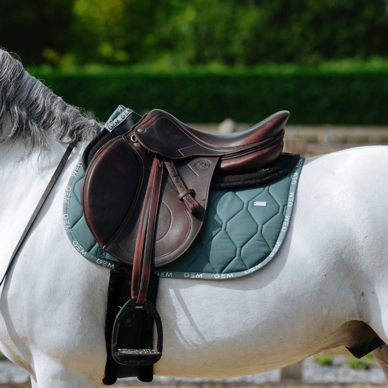 L'iconique tapis Love GEM est un véritable best-seller parmi les tapis de selle ! Vous serez séduit par son bord en coton brodé de logos GEM blancs, apportant une touche sportive et élégante à ce modèle.
