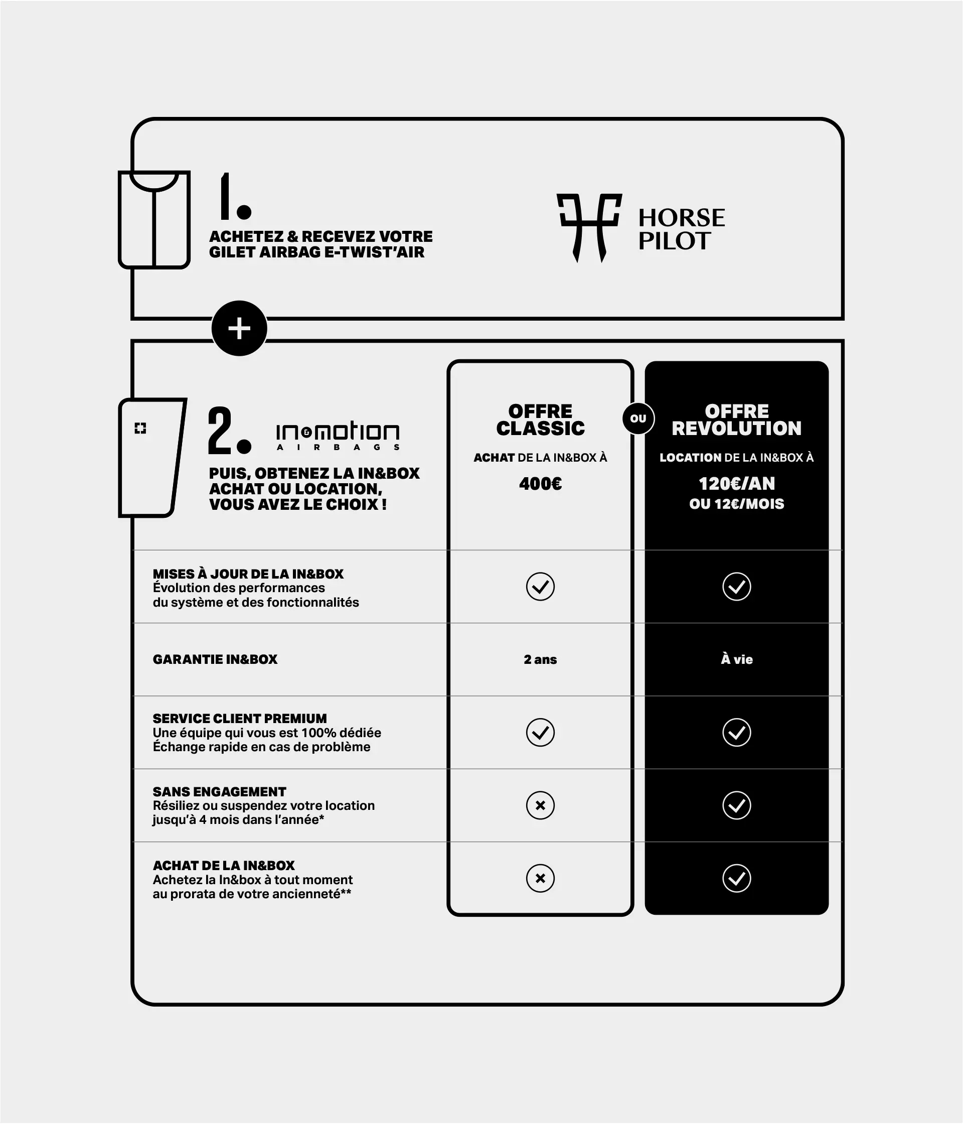 ⚠️ Important : Le gilet est vendu sans le boîtier de commande In&box, indispensable à son fonctionnement. Pour louer ou acheter ce boîtier et activer votre abonnement my In&box, rendez-vous sur shop.inemotion.com
