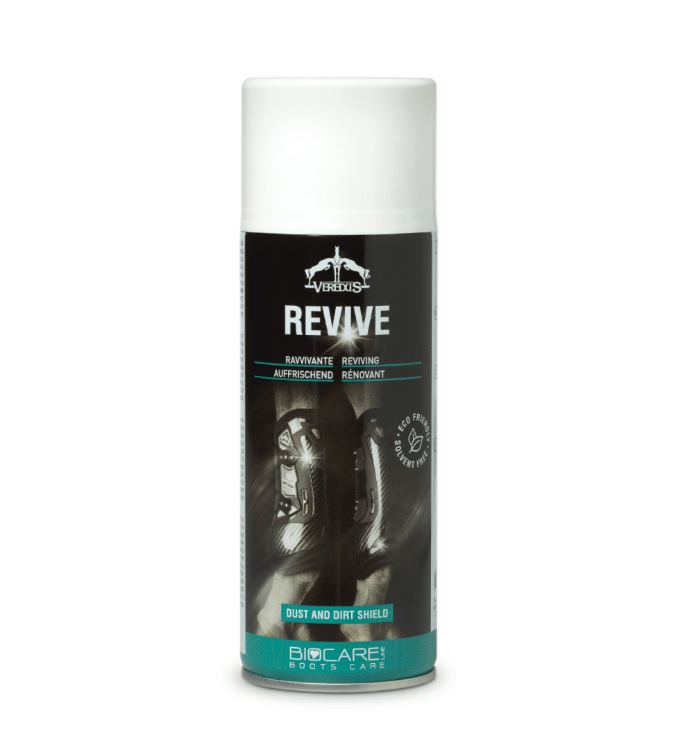 Revive Spray est conçu pour raviver la brillance de vos bottes d’équitation et entretenir tous vos accessoires et protections. Grâce à son effet lustrant, il agit comme un bouclier protecteur contre la poussière et la saleté, tout en prolongeant la durée de vie de vos équipements.