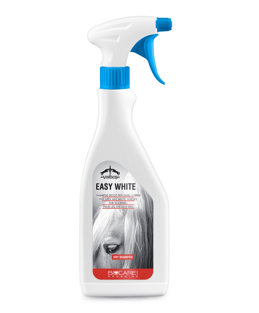 Le shampoing sec en spray est la solution idéale pour éliminer rapidement les taches sur les chevaux gris, sans avoir besoin d’un lavage complet. Son action détachante ultra rapide agit en moins d’une minute pour faire disparaître salissures, sueur, traces de fumier ou de boue.