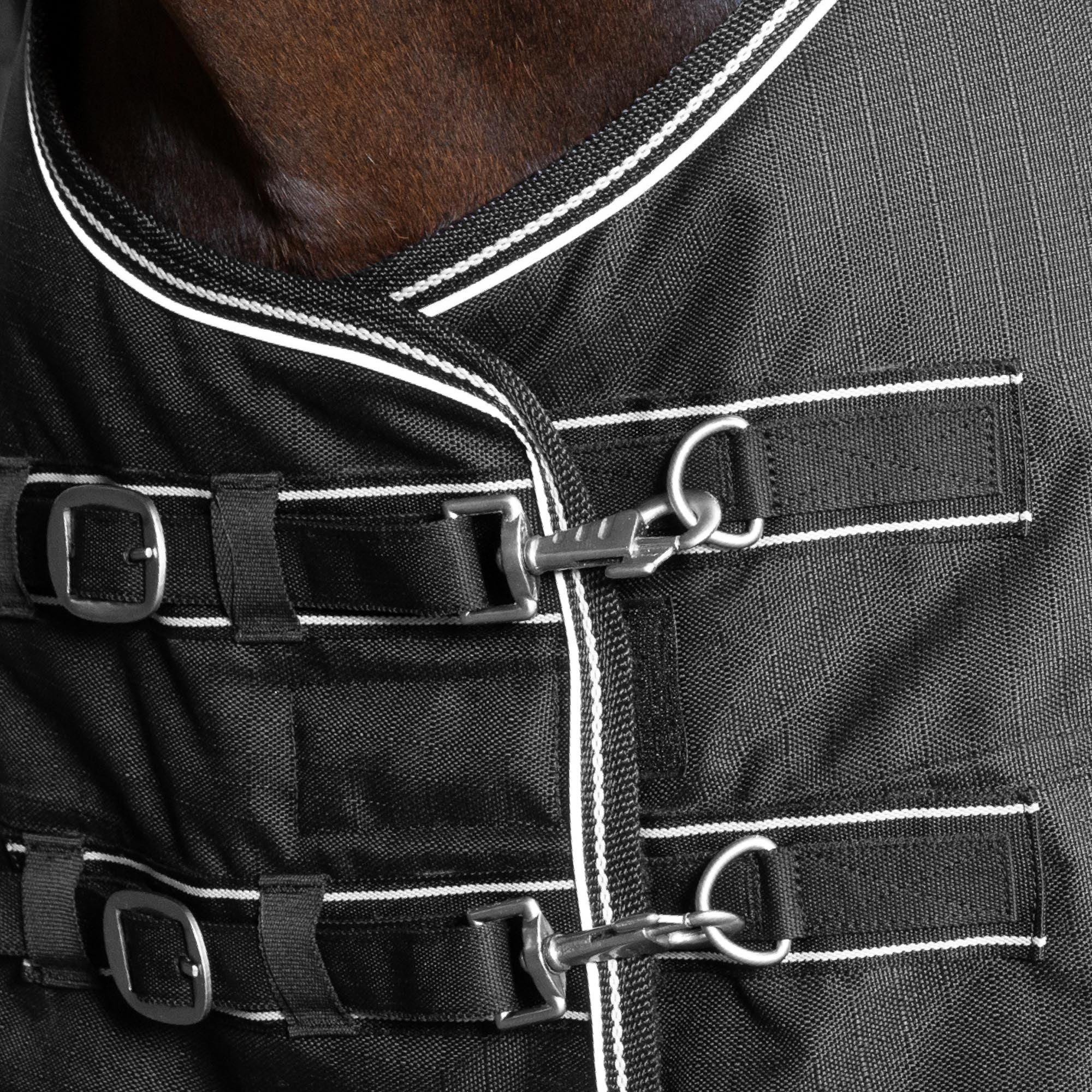 La couverture Brianna 50G de Back On Track est un choix idéal pour protéger votre cheval dans des conditions climatiques variées. Conçue avec une isolation légère de 50 grammes, elle est parfaite pour les températures fluctuantes du printemps, de l'automne ou les hivers doux. La technologie Welltex intégrée dans la doublure de la couverture utilise des particules de céramique pour refléter la chaleur corporelle du cheval, améliorant ainsi la circulation sanguine et aidant à réduire les inflammations et les douleurs musculaires.Cette couverture est fabriquée avec un tissu extérieur en ripstop de 1200 deniers, offrant une grande durabilité et une protection efficace contre les déchirures. Elle est également entièrement imperméable et respirante, avec des spécifications de 3000/3000, garantissant que votre cheval reste sec et confortable même sous la pluie. Des détails pratiques tels que des fermetures à crochets et à boucles, des sursangles croisées et un couvre-queue facile à nettoyer ajoutent à sa fonctionnalité.Le design inclut une coupe haute au niveau du cou et des plis d'épaule pour permettre une liberté de mouvement maximale, ce qui est particulièrement bénéfique pour les chevaux actifs. En somme, la couverture Brianna 50G de Back On Track est une combinaison de protection, de confort et de bien-être pour votre cheval, parfaite pour les saisons de transition et les conditions météorologiques imprévisibles.