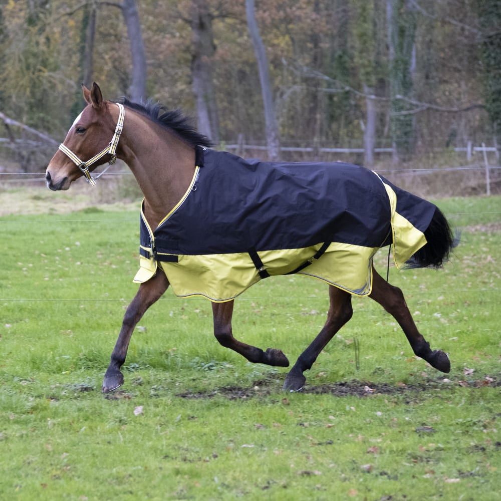 La couverture Equithème Tyrex 600D Standard 0g est spécialement conçue pour offrir une protection efficace contre les intempéries tout en assurant le confort de votre cheval. Fabriquée en polyester ripstop 600 deniers, cette couverture est extrêmement résistante aux déchirures et à l'usure, assurant une durabilité exceptionnelle. Les coutures thermo-soudées garantissent une imperméabilité parfaite, empêchant l'eau de pénétrer, tout en maintenant une bonne respirabilité pour éviter l'accumulation d'humidité sous la couverture.Cette couverture est dotée d'une doublure en nylon douce qui aide à réduire les risques d'irritation cutanée. Elle comprend également un pad de garrot en mouton synthétique pour offrir un confort supplémentaire et éviter les frottements. La fermeture de poitrail par fixation rapide est renforcée par des bandes auto-agrippantes pour un ajustement sécurisé.Les caractéristiques fonctionnelles incluent des sursangles croisées basses pour un maintien optimal, une courroie de queue réglable, et un grand rabat de queue imperméable pour une protection supplémentaire contre le vent et la pluie.Caractéristiques PrincipalesMatériau : Polyester ripstop 600 deniersProtection : Imperméable et respirante, coutures thermo-soudéesConfort : Doublure en nylon, pad de garrot en mouton synthétiqueAjustement : Fermeture de poitrail rapide avec bandes auto-agrippantes, sursangles croisées, courroie de queue réglableExtras : Grand rabat de queue imperméableCette couverture est idéale pour garder votre cheval au sec et confortable pendant les saisons intermédiaires, offrant une protection fiable et durable contre les intempéries?