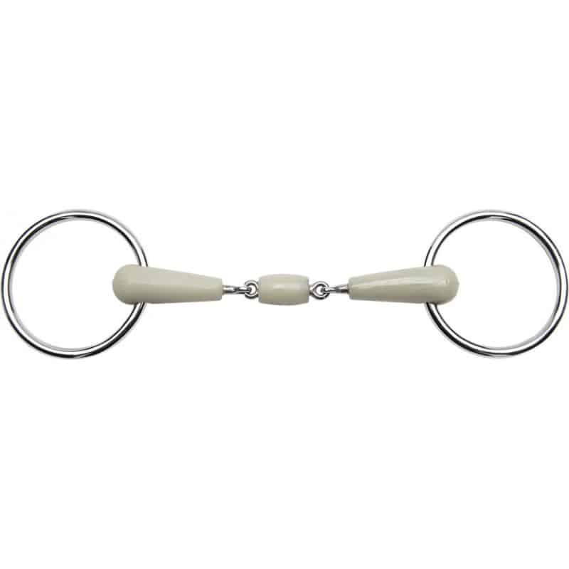 Ce mors à double brisure avec anneaux flexibles est conçu pour offrir une action douce et précise, idéal pour les chevaux sensibles ou jeunes en formation.