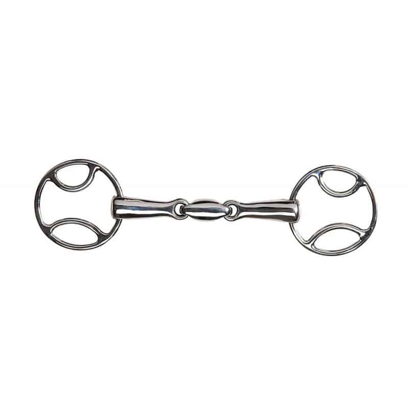 Ce mors anatomique avec passes est conçu pour une répartition optimale de la pression, favorisant un meilleur contrôle et une communication efficace avec le cheval.