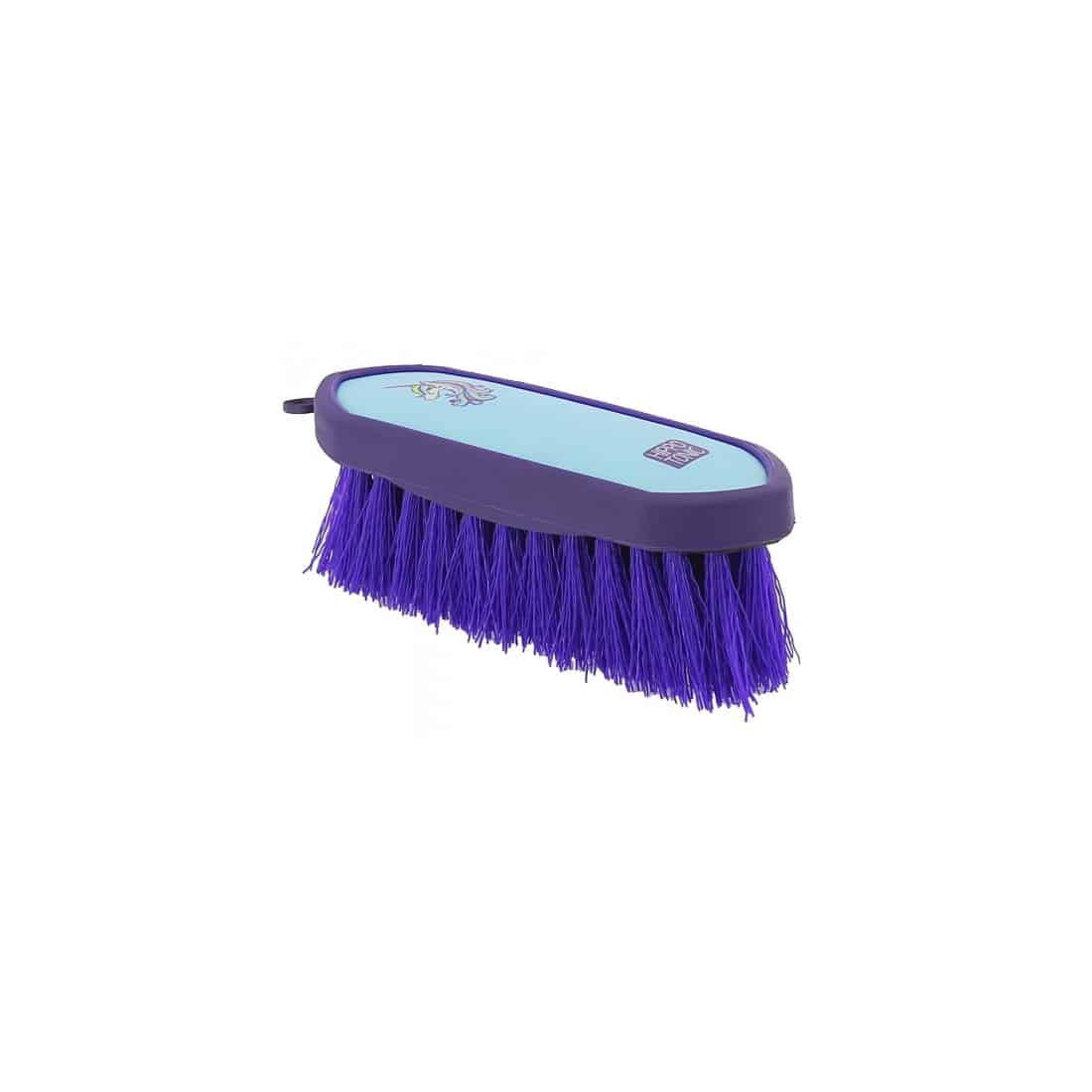 e bouchon HIPPOTONIC "Soft Fantaisie PM" est une brosse de pansage élégante et pratique, idéale pour nettoyer efficacement votre cheval. Ce bouchon est doté de poils bicolores en fibres de polypropylène de 5,5 cm de long, parfaits pour éliminer la poussière et les saletés tout en laissant le poil lisse et brillant.Caractéristiques :Poils : Fibres de polypropylène bicolores de 5,5 cm.Dos : En polyuréthane avec un effet cuir, offrant une prise en main confortable.Ergonomie : La forme du bouchon permet une manipulation facile, même lors de séances de pansage prolongées.Taille : Petit modèle (PM), mesurant 15,4 cm de longueur, 5,2 cm de largeur et 5,5 cm de hauteur.Avantages :Design Attrayant : Le bouchon est disponible en plusieurs couleurs vives et joyeuses, ajoutant une touche de fantaisie à votre équipement de pansage.Confort de Prise en Main : Grâce à son dos en polyuréthane et ses bords rembourrés, ce bouchon est agréable à tenir, même pour les séances de pansage prolongées.Efficacité : Les poils longs et souples permettent de retirer efficacement la poussière et les poils morts, tout en offrant un massage doux et relaxant à votre cheval.Ce bouchon est idéal pour les cavaliers recherchant à la fois efficacité et esthétique dans leur matériel de pansage.