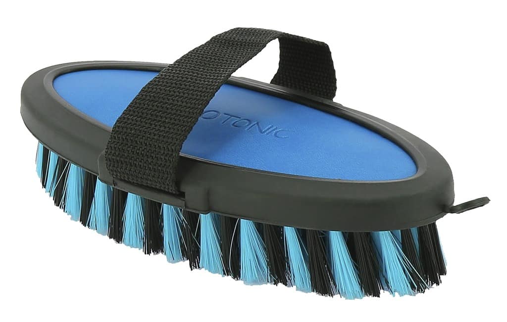 La brosse douce Soft petit modèle de Hippotonic est conçue pour fournir un soin doux et efficace aux chevaux, particulièrement adaptée aux zones sensibles comme la tête. Cette brosse est dotée d'un dos en polyuréthane effet cuir, rembourré de mousse pour un confort optimal lors de l'utilisation. Les renforts sur les bords ajoutent à la durabilité et au confort de la brosse, garantissant une utilisation agréable.Les fibres bicolores de 3,9 cm en polypropylène sont assez souples pour nettoyer délicatement la saleté et les poils morts sans irriter la peau du cheval. La sangle en polypropylène permet une prise en main ergonomique, facilitant ainsi le processus de pansage.Ce modèle est disponible en plusieurs couleurs attrayantes, telles que rouge, noir, marine, violet, brun, fuchsia, bordeaux, bleu roi et bleu ciel. Cela permet de personnaliser votre kit de pansage selon vos préférences et de rendre ce moment de soin encore plus agréable.Pour entretenir la brosse, il est conseillé de la nettoyer régulièrement à l'eau claire et de la désinfecter avec un produit antibactérien deux fois par an pour garantir une hygiène optimale et prolonger sa durée de vie.