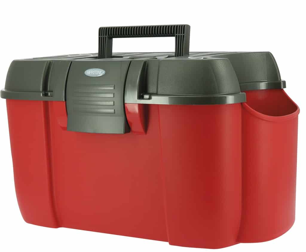 Le coffre de pansage Hippo-Tonic Koala est un équipement essentiel pour tout cavalier souhaitant organiser et transporter facilement ses outils de pansage. Construit en polypropylène robuste, ce coffre est capable de supporter jusqu'à 120 kg, ce qui le rend extrêmement durable et pratique comme marchepied ou siège temporaire lors des soins aux chevaux.Caractéristiques principales :Construction robuste : Fabriqué en polypropylène de haute qualité, le coffre est conçu pour résister à une utilisation intensive et aux rigueurs du quotidien dans une écurie.Grande capacité : Avec des dimensions de 52,5 x 34 x 30 cm, ce coffre offre suffisamment d'espace pour ranger tous vos accessoires de pansage.Poche latérale "Koala" : Cette caractéristique unique permet de maintenir debout même les bouteilles les plus hautes, ajoutant ainsi une fonctionnalité pratique pour un rangement vertical.Plateau amovible : Le plateau peu profond et amovible permet de garder à portée de main les petits objets souvent utilisés, tels que les élastiques, les éponges, et les brosses.Sécurisation par cadenas : Le coffre est cadenassable, offrant ainsi une sécurité supplémentaire pour vos effets personnels.Fermeture à clip : Une grande fermeture à clip en plastique assure que le coffre reste solidement fermé pendant le transport, évitant ainsi tout risque de perte de contenu.Entretien :Pour nettoyer le coffre, il suffit de le vider de son contenu et de le rincer à l'eau claire. L'entretien est facile et permet de maintenir le coffre en bon état d'utilisation pendant longtemps.