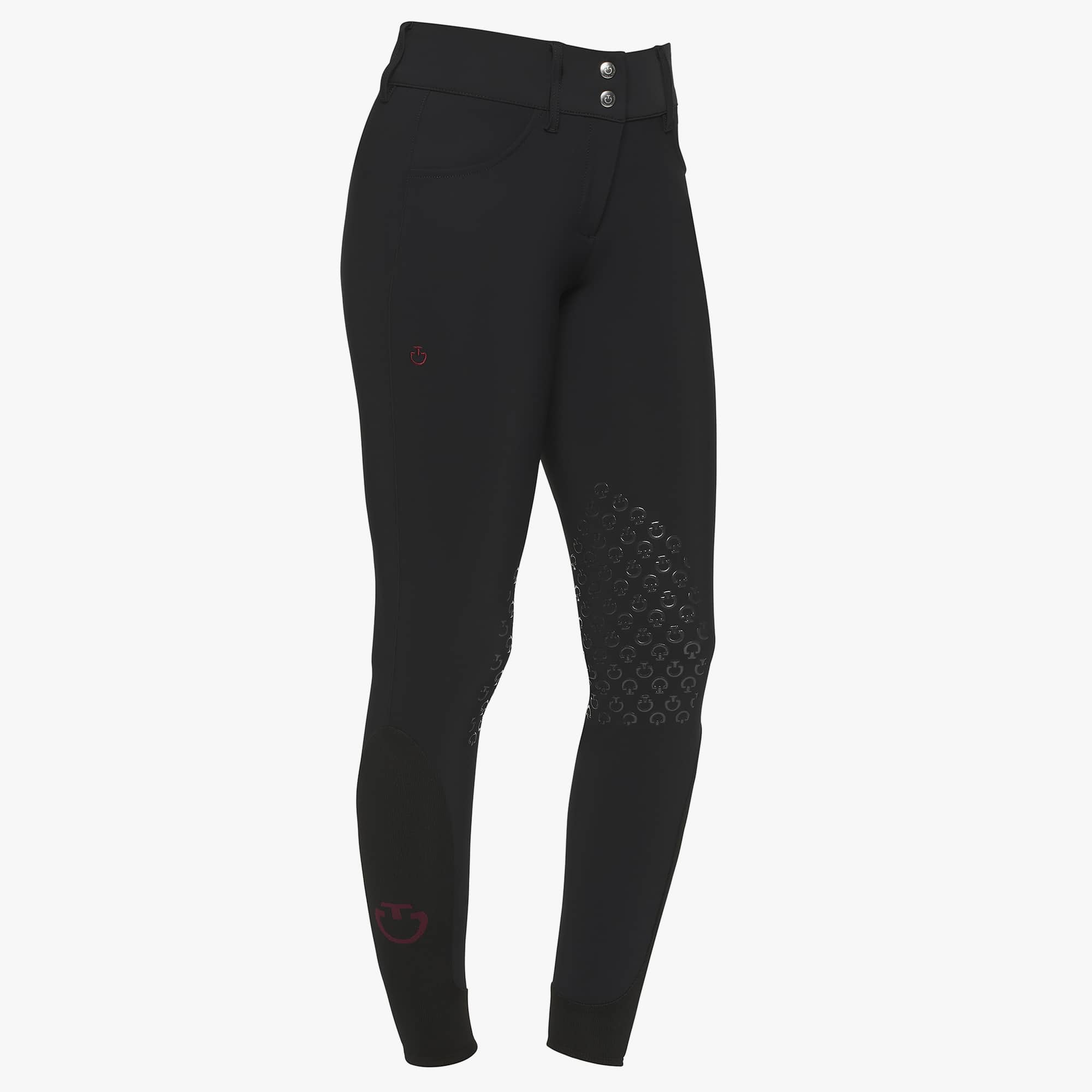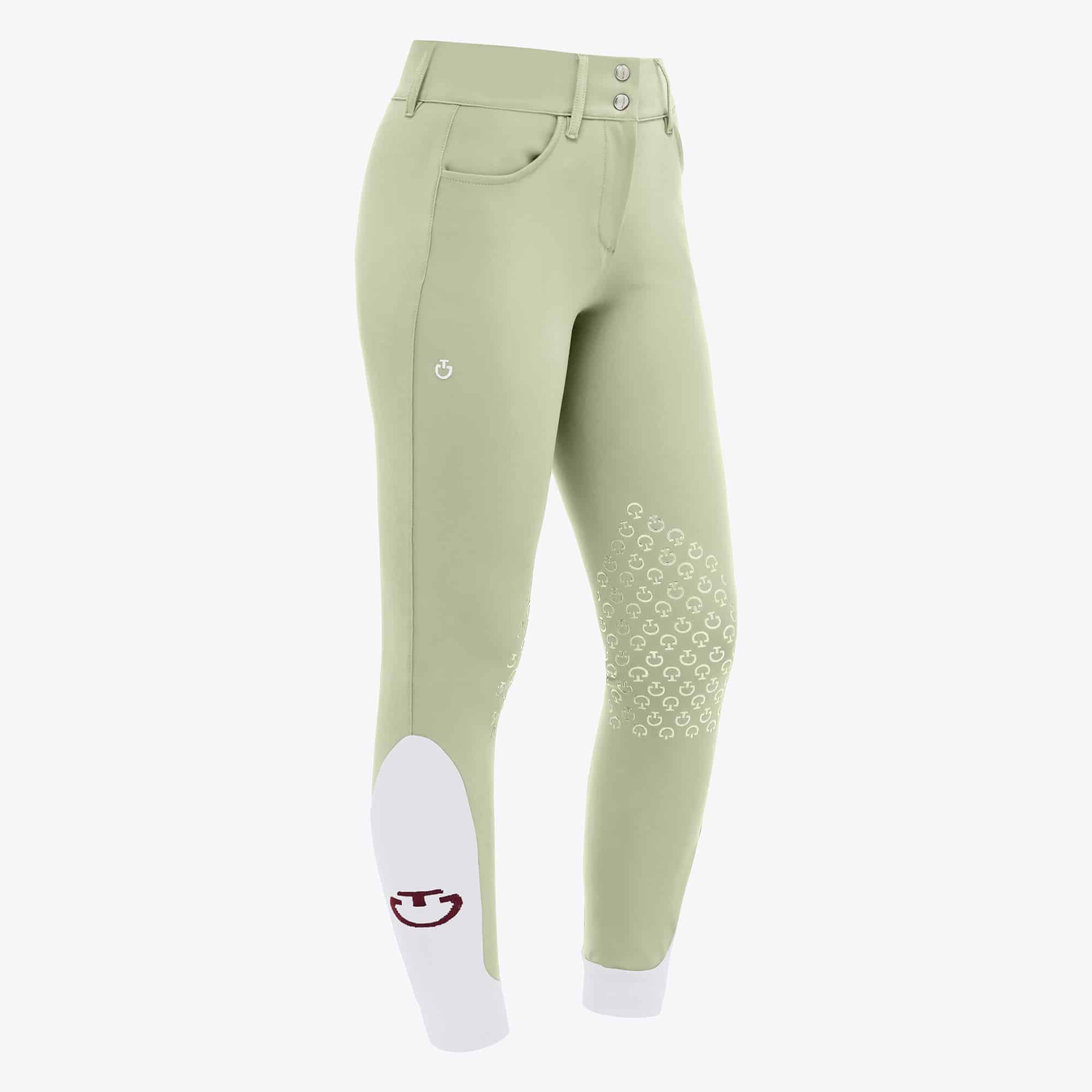 La taille haute et la ceinture extra-large garantissent un ajustement confortable sans restreindre les mouvements. Le siège en silicone, imprimé avec le logo de Cavalleria Toscana, assure une adhérence parfaite dans la selle, améliorant ainsi la sécurité et la stabilité du cavalier. Les inserts élastiques aux bas des jambes permettent un ajustement sans plis sous les bottes, ajoutant au confort général.