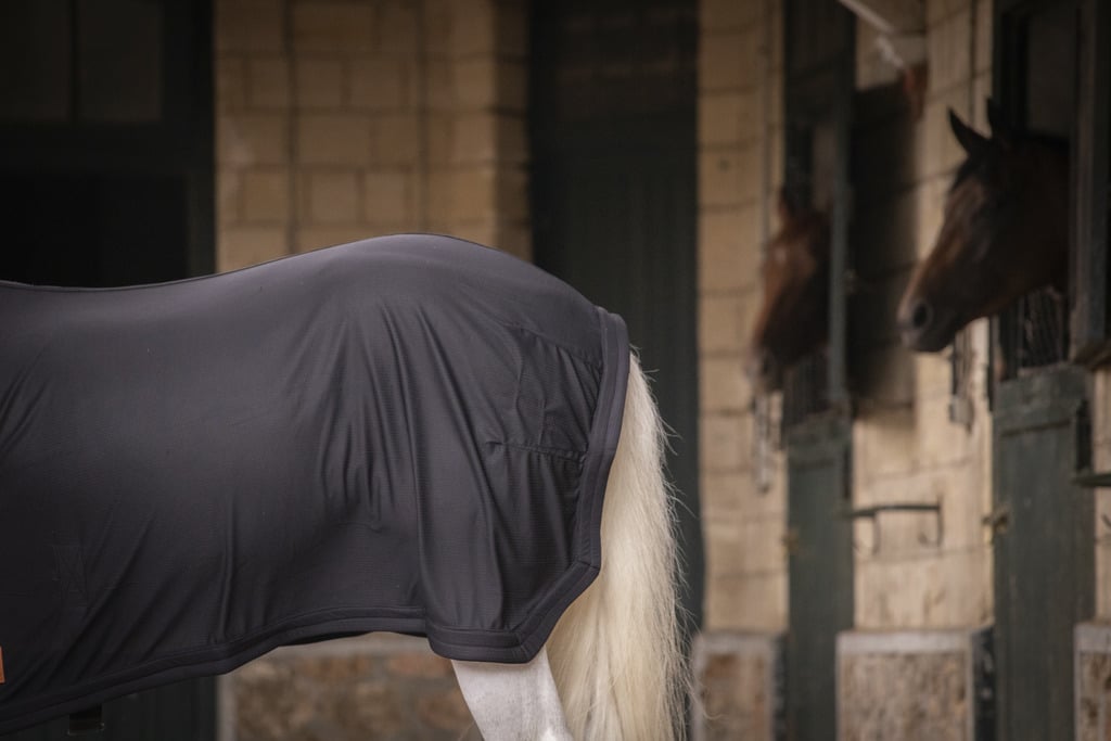 La chemise séchante Paddock Sports est conçue pour assurer un séchage rapide et efficace de votre cheval après une séance de travail ou une douche. Fabriquée en tissu nid d'abeilles technique, cette chemise est ultra-respirante, légère et confortable, permettant une évaporation rapide de l'humidité. La chemise est dotée d'une pince d'aisance à l'épaule pour un meilleur ajustement et une réduction des frottements.Elle se ferme facilement grâce à une boucle au niveau du poitrail, complétée par une sangle ventrale et une courroie de queue en nylon pour un maintien optimal. La chemise est disponible en tailles allant de 125 cm à 155 cm et en couleurs marine et noir. Pour l'entretien, il est recommandé de la laver en machine à 30°C et de ne pas utiliser de sèche-linge pour préserver ses qualités techniques?