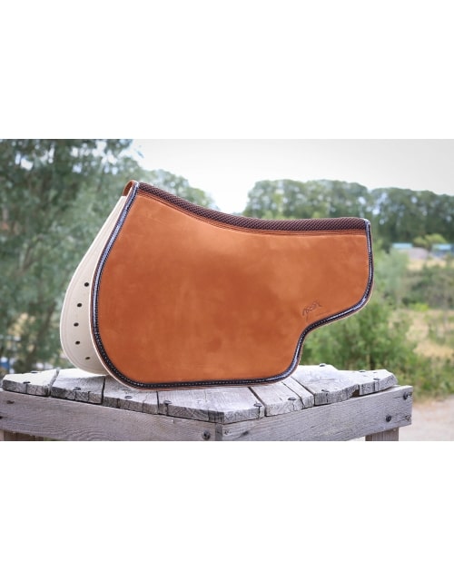 L'amortisseur de dos mixte Pénélope est une combinaison parfaite de tradition et de modernité, conçu pour offrir un confort maximal au cheval tout en garantissant une performance optimale. Fabriqué en France, cet amortisseur est composé de trois matériaux principaux : le feutre, le néoprène amortissant et le cuir de nubuck. Le feutre est réputé pour ses propriétés d'absorption des chocs, sa grande résistance à l'usure et ses capacités thermorégulatrices, ce qui permet une utilisation tout au long de l'année.Une bande en mesh 3D aéré court le long de la colonne du cheval, libérant ainsi la ligne de dos et améliorant la respirabilité. Cette bande facilite également le dégarottage, assurant un confort supplémentaire pour le cheval. Les grands panneaux en feutre permettent de mieux répartir les points de pression sous la selle, tandis que le cuir assure une meilleure adhérence.Esthétiquement, l'amortisseur de dos Pénélope se distingue par son galon verni orné du point sellier, signature de la marque, et un empiècement en simili cuir avec le logo Pénélope. Sa forme dégarottée et son absence de couture ajoutent à son confort et à son efficacité.Cet amortisseur convient aux selles de 16 à 17,5 pouces et est idéal pour différents types de chevaux et grands poneys. Pour l'entretien, il suffit de le brosser pour enlever la poussière et la paille, et le laisser sécher à l'air libre après utilisation?