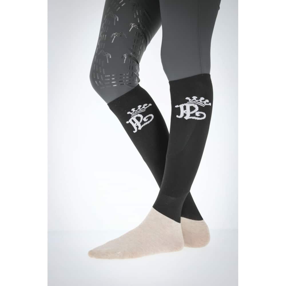 Les chaussettes de concours Pénélope sont conçues pour offrir confort et performance aux cavaliers lors des compétitions. Leur tige est en polyamide et élasthanne Lycra®, garantissant un ajustement parfait et une bonne élasticité sans comprimer le mollet. Le pied en coton est doux et respirant, assurant une excellente gestion de l'humidité et un confort durable pendant toute la journée.Caractéristiques principales :Composition : 57,7% polyamide, 26,1% coton, 11,7% polyester, 4,5% élasthanne Lycra®.Design : Chaussettes hautes avec un renfort gris au niveau du pied pour plus de confort. Elles sont décorées du logo Pénélope en contraste sur la partie haute du mollet.Confort et ajustement : La coupe anatomique permet d'épouser le galbe du mollet, assurant que les chaussettes restent en place sans glisser dans les bottes d'équitation.Entretien : Lavable en machine à 30°C, ces chaussettes sont faciles à entretenir.Disponibles en plusieurs tailles (31/36 et 36/41) et en différentes couleurs, telles que noir, bleu roi, marine, gris, fuchsia, et bien d'autres, ces chaussettes s'adaptent à toutes les préférences et tenues de concours. Vendues par lot de deux paires, elles sont parfaites pour compléter votre équipement d'équitation avec élégance et praticité.