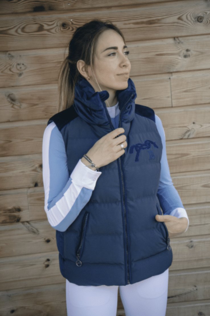 La doudoune sans manches Sonia de la collection Penelope est conçue pour offrir chaleur et confort tout en permettant une grande liberté de mouvement. Inspirée par le blouson Pepyrène, cette doudoune utilise des matériaux similaires qui garantissent une isolation thermique optimale et une souplesse remarquable.Fabriquée à partir de 88% polyester et 12% élasthanne, elle présente une doublure généreuse composée à 100% de polyester, assurant une protection maximale contre le froid. Des empiècements en velours ajoutent une touche de féminité et de sophistication, faisant de cette doudoune un choix idéal tant pour les écuries que pour une utilisation urbaine.Le design moderne de la doudoune Sonia est disponible en plusieurs tailles, allant du XS au XL, ainsi qu'en tailles junior (12/14 ans). Les conseils de taille indiquent qu'elle taille normalement, permettant de choisir sa taille habituelle sans souci.Pour l'entretien, il est recommandé de laver cette doudoune en machine à 30°C et de la sécher à l'air libre, en évitant le sèche-linge pour préserver la qualité des matériaux.